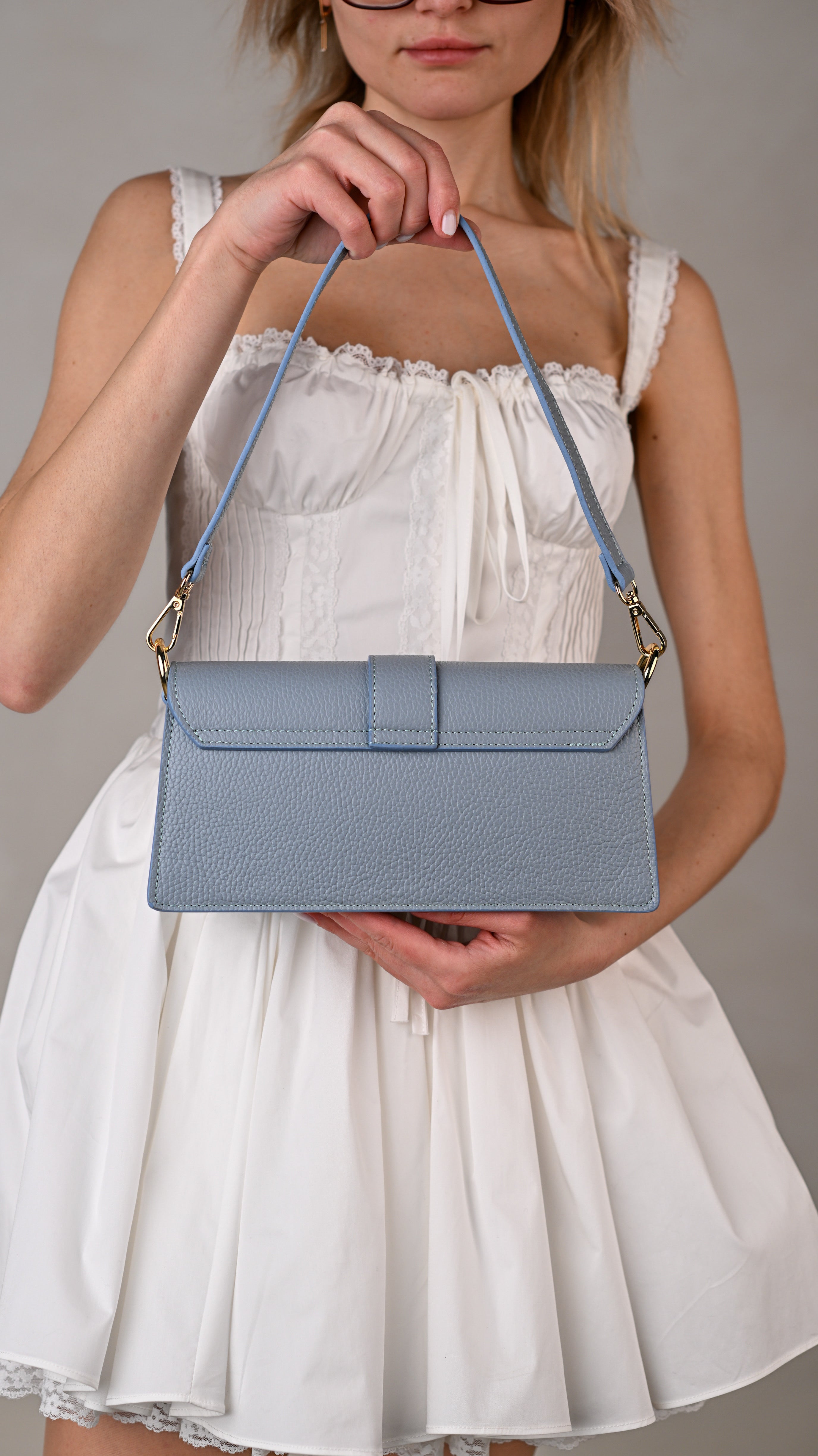 ALEXIA BABY BLUE, ECHTES LEDER.