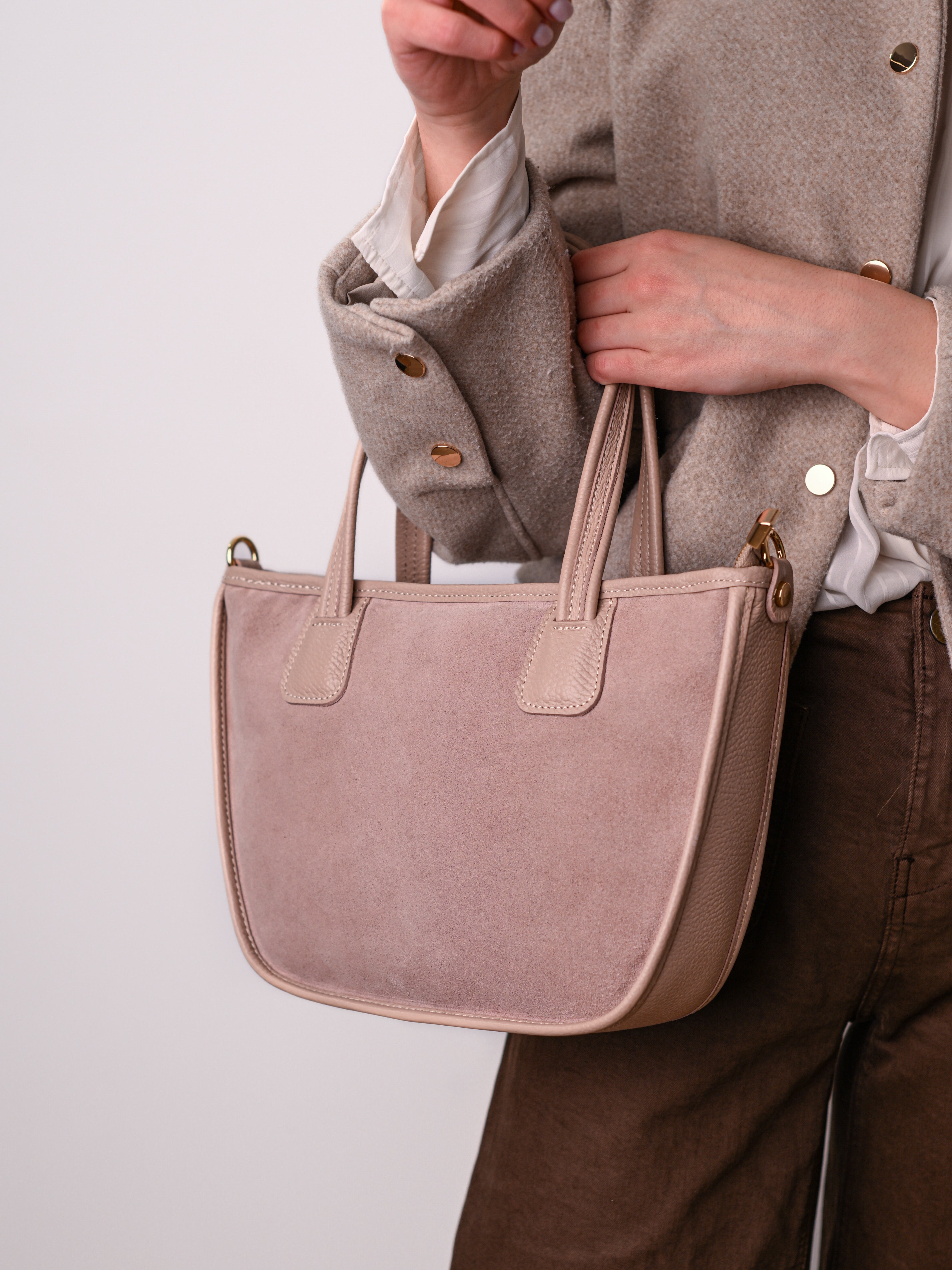VANESSA MINI, HELLBEIGE, NATURLEDER VELOURS UND GLATT
